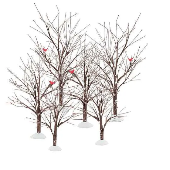 A Touch Of Frost And Several Brightly Colored Birds Add To This Bendable Set Of Trees. Shape Them To Fit Any Display. Use Department 56 Cross Product Accessories To Enhance Your Village Display. 12, 9.5, 7.5”