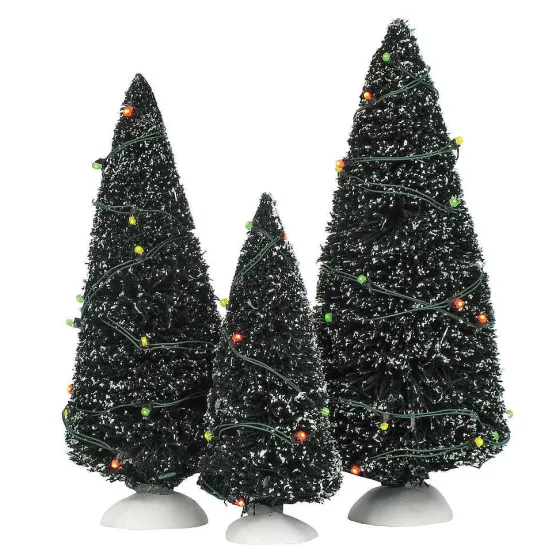 These Prelit Trees Are A Must For Your Village. Each Set Includes An Adapter. Use Department 56 Cross Product Accessories To Enhance Your Village Display. Set Of 3. 8.5, 7.5, 5.5″